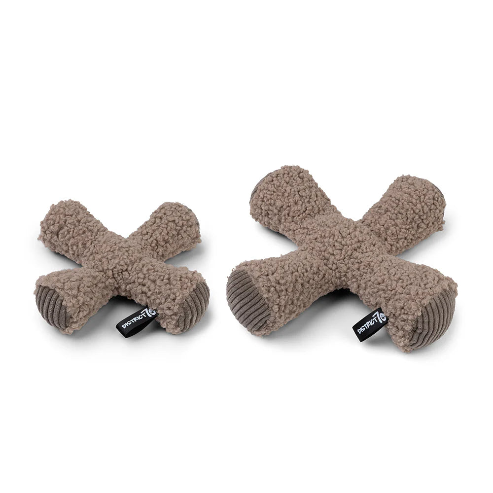 De kruislings gevormde knuffel is afgewerkt met ribstof randen voor extra grip en is verkrijgbaar in twee maten. Het moderne ontwerp in zachte kleuren maakt dit speelgoed niet alleen aantrekkelijk voor honden, maar ook voor het oog in elk interieur.
